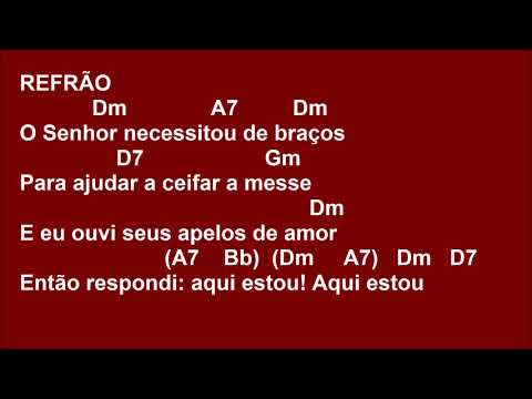 O Senhor necessitou de braços - O Senhor Necessitou De Braos - O Senhor necessitou de braços Para ajudar a ceifar a messe E eu ouvi seus apelos de amor Então respondi: aqui estou! Aqui estou! Eu vim para dizer que eu ...